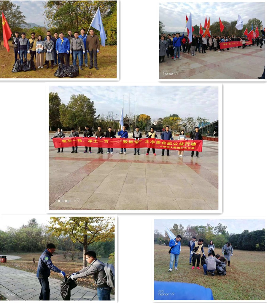 為深入貫徹黨的十九大精神,加強(qiáng)生態(tài)文明建設(shè),合肥市大數(shù)據(jù)行業(yè)黨委主辦開展“數(shù)據(jù)幫”之凈美合肥公益活動(dòng)。響應(yīng)“俯身一拾,凈土一方”的主題,我公司工會(huì)委員會(huì)積極號(hào)召公司人員報(bào)名參加。
