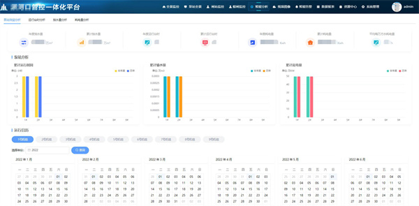 通過運(yùn)行效益分析,直觀展示泵站、船閘的效益情況,主要包括平均每平方水耗電量、抽水量、運(yùn)行臺時、耗電量、棄水量等概覽信息,以及歷史分析信息和運(yùn)行日程信息,為泵站/船閘經(jīng)濟(jì)運(yùn)行提供參考依據(jù)。
