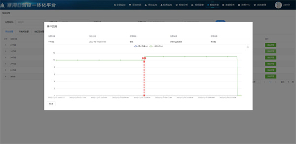 分類展示泵站、節(jié)制閘、船閘等的告警信息,支持對告警信息進(jìn)行人工干預(yù)。可以通過后臺關(guān)聯(lián)相關(guān)性影響指標(biāo),獲取告警前后相關(guān)性影響指標(biāo)瞬時的變化趨勢,為用戶分析告警原因提供參考依據(jù)。