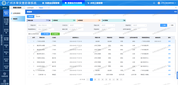 對(duì)市區(qū)兩級(jí)應(yīng)急綜合預(yù)案、域內(nèi)所有水庫(kù)、水閘、泵站、堤防等水利設(shè)施預(yù)案,以及城市所有排澇片、積水風(fēng)險(xiǎn)點(diǎn)、山洪災(zāi)害危險(xiǎn)區(qū)等片(點(diǎn))預(yù)案,實(shí)現(xiàn)全覆蓋更新管理。2023年,支撐市、區(qū)兩級(jí)水旱災(zāi)害防御部門(mén)更新720條預(yù)案信息。