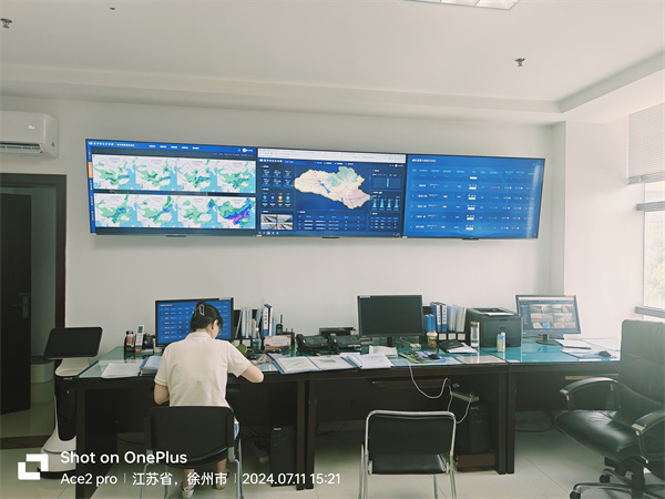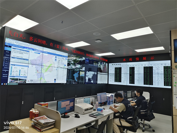 在沂沭泗水利管理局防汛值班室,值班人員通過大屏可實時查看歷史/實時水文數據,系統(tǒng)仿真模擬展現流域洪水演進、洪水淹沒等洪水過程,獲取洪峰流量、洪峰達到時間及洪水水位等洪水關鍵信息,為區(qū)域安全度汛提供科學支撐。