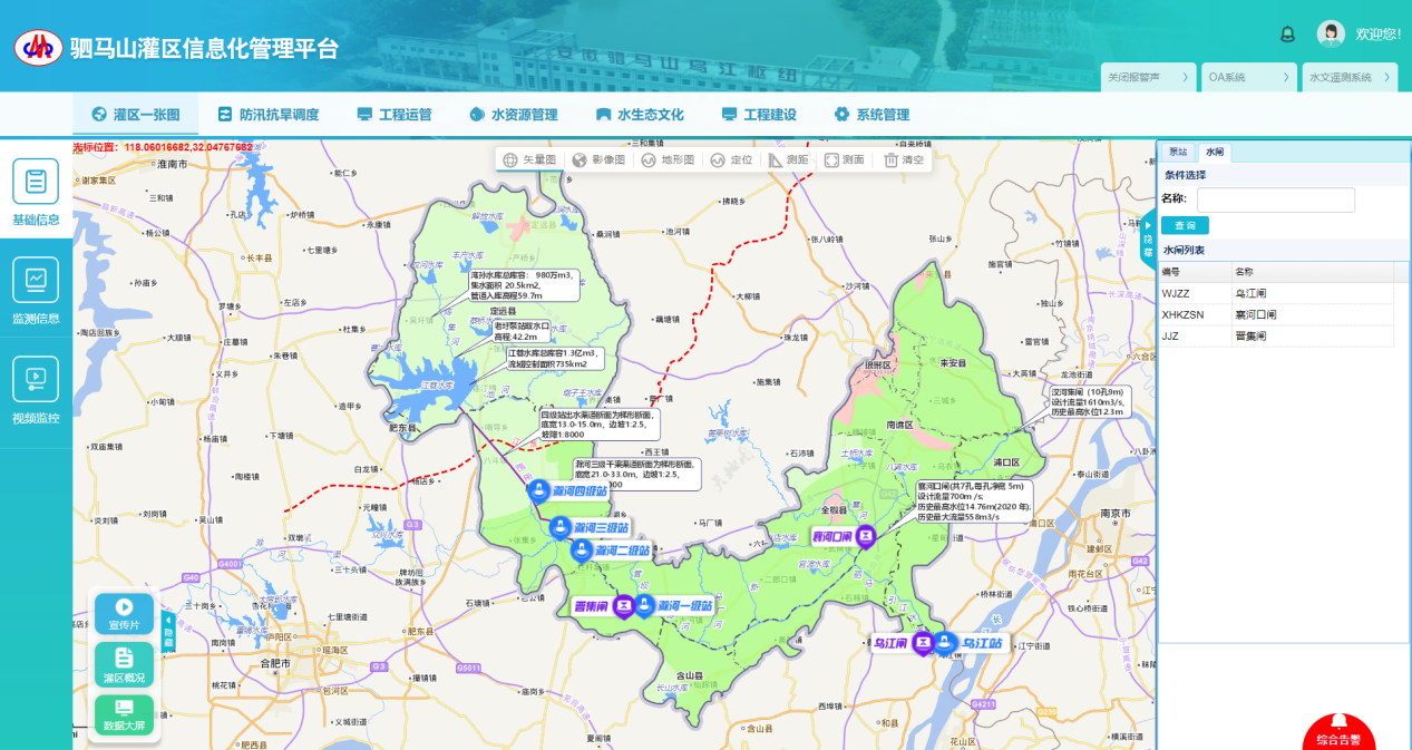 灌區(qū)一張圖:將各種監(jiān)測要素集成到一張圖,包括一體化閘門、泵站、墑情、流量監(jiān)測、水庫、雨情、視頻等信息,保證基礎信息、監(jiān)測信息等各類信息的展示、查詢和統(tǒng)計等功能,實現(xiàn)了系統(tǒng)“可感”、“可知”、“可視”。提升了灌區(qū)水資源配置、水旱災害防御、供用水管理能力。
